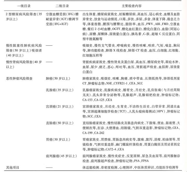 (1)以健康評價和健康風險篩查為目的,重點掌握受檢者健康狀況、早期發(fā)現(xiàn)疾病線索;